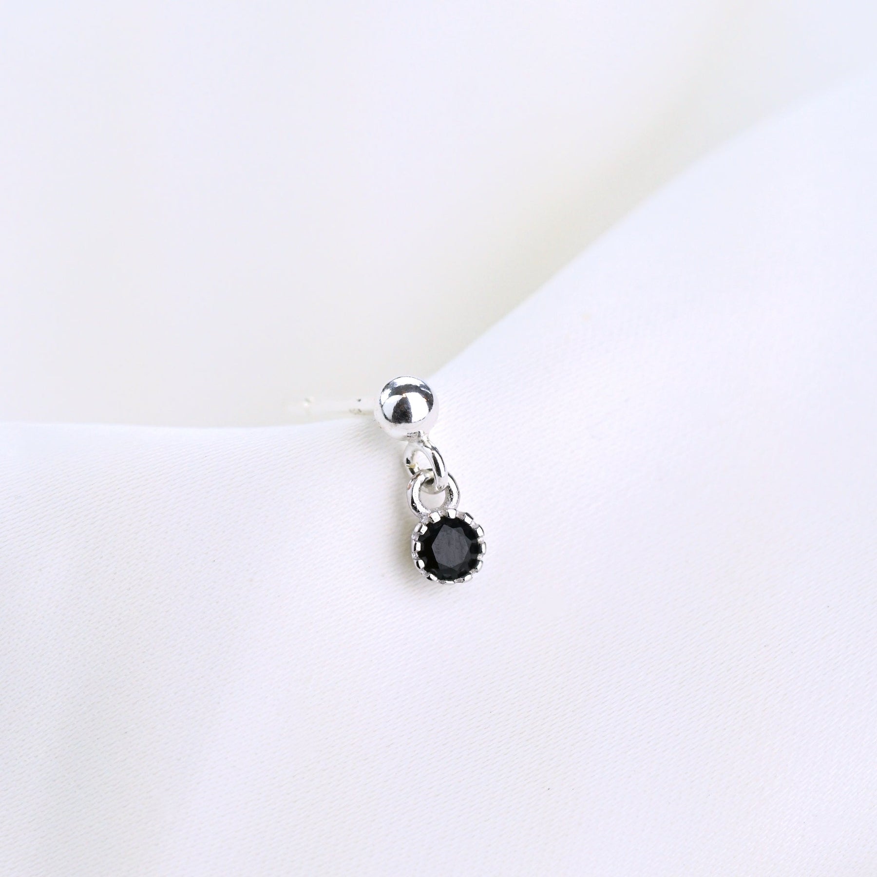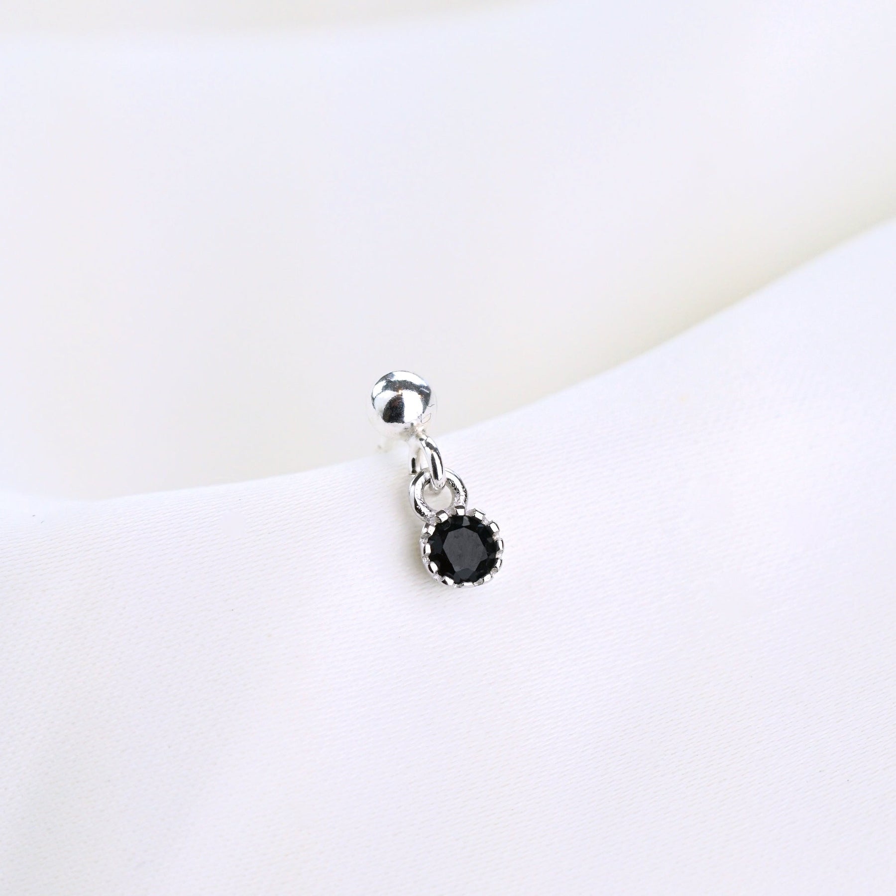 The earpin is solid 925 sterling silver and the charm is high quality silver plated with a zirconia stone set in it