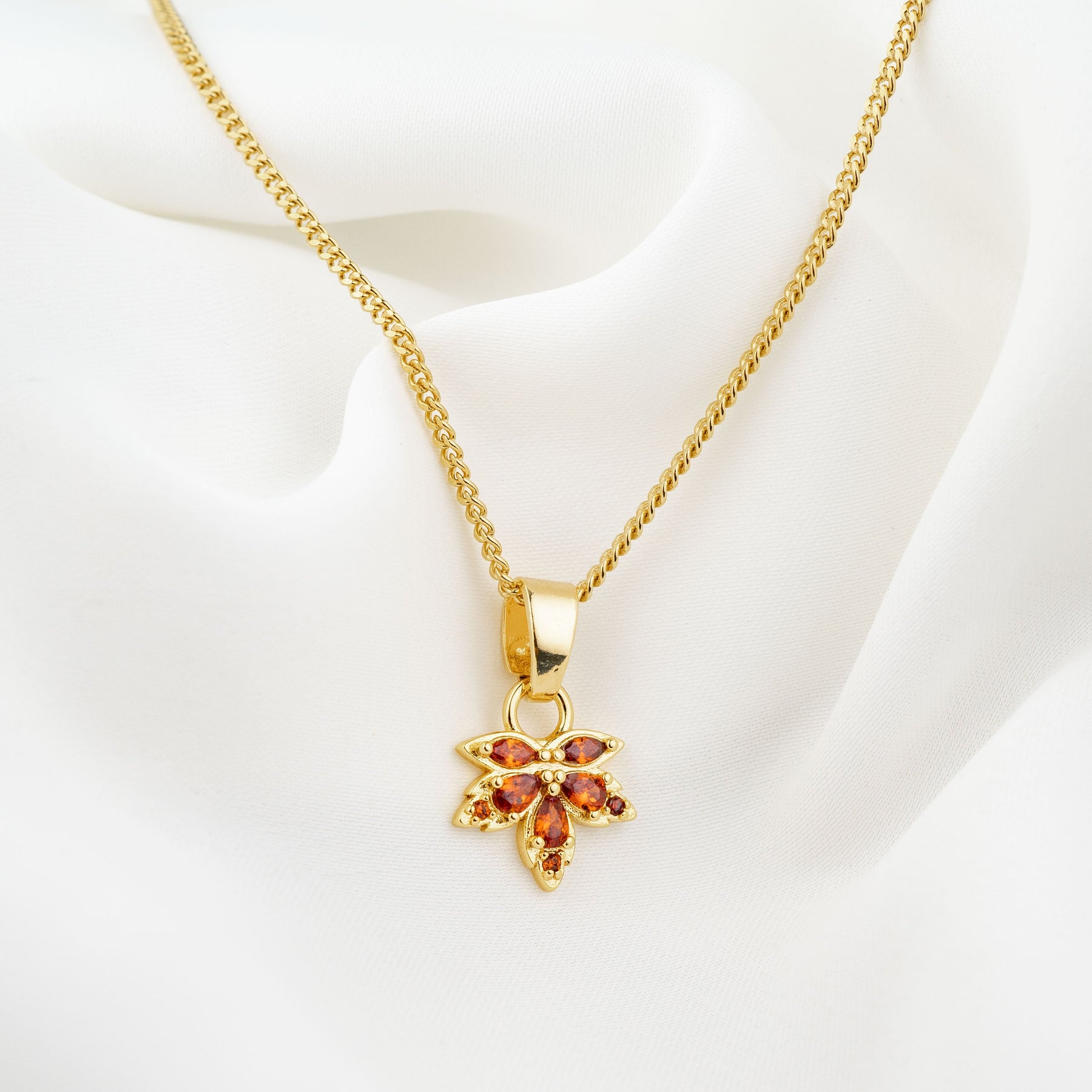 The pendant is high quality gold plated using 1 micron 18 karat gold with zirconia stones set in it. And the necklace is made of gold coloured stainless steel