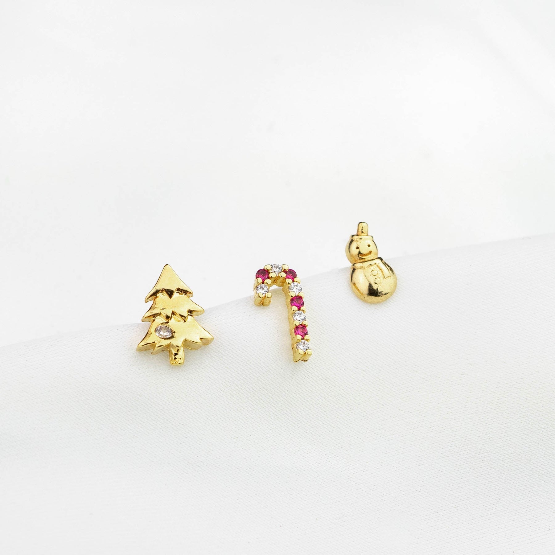 ♡ You will get: Sugar Cane Stud, Tiny Snowman Stud, Sparkly Christmas Tree Stud, Small Opal Penguin Earring, Ice Crystal Earring