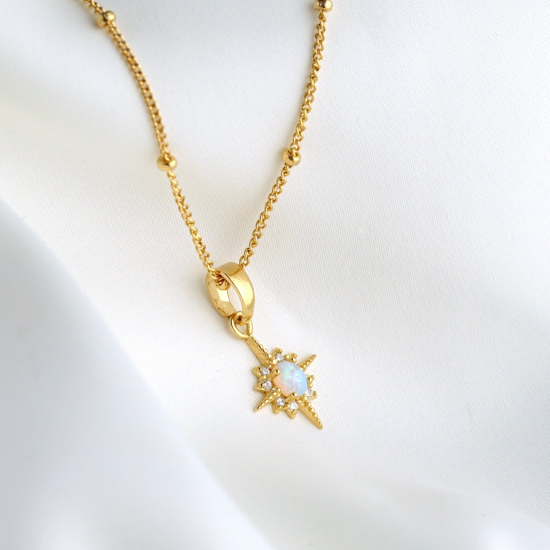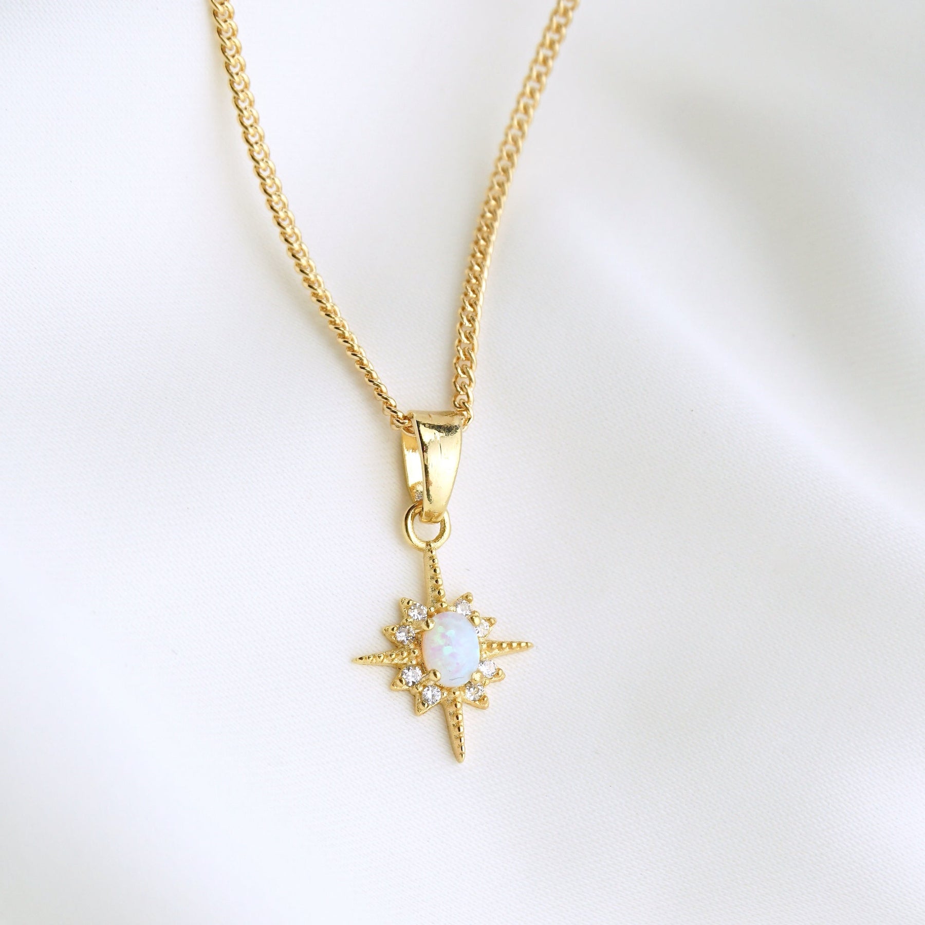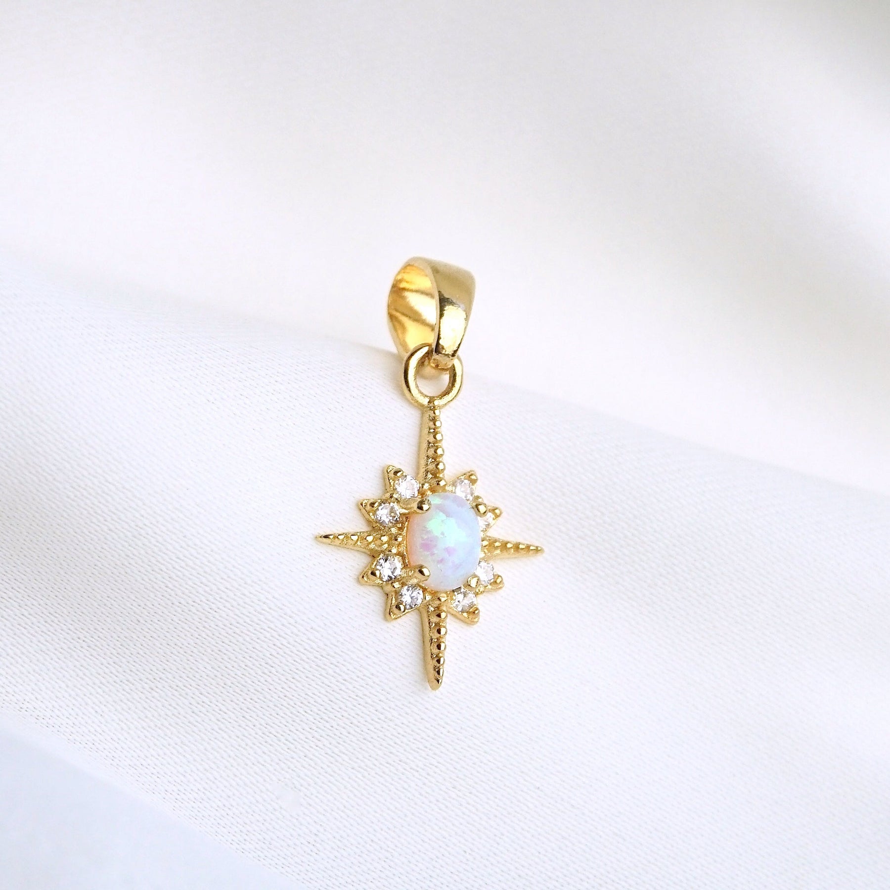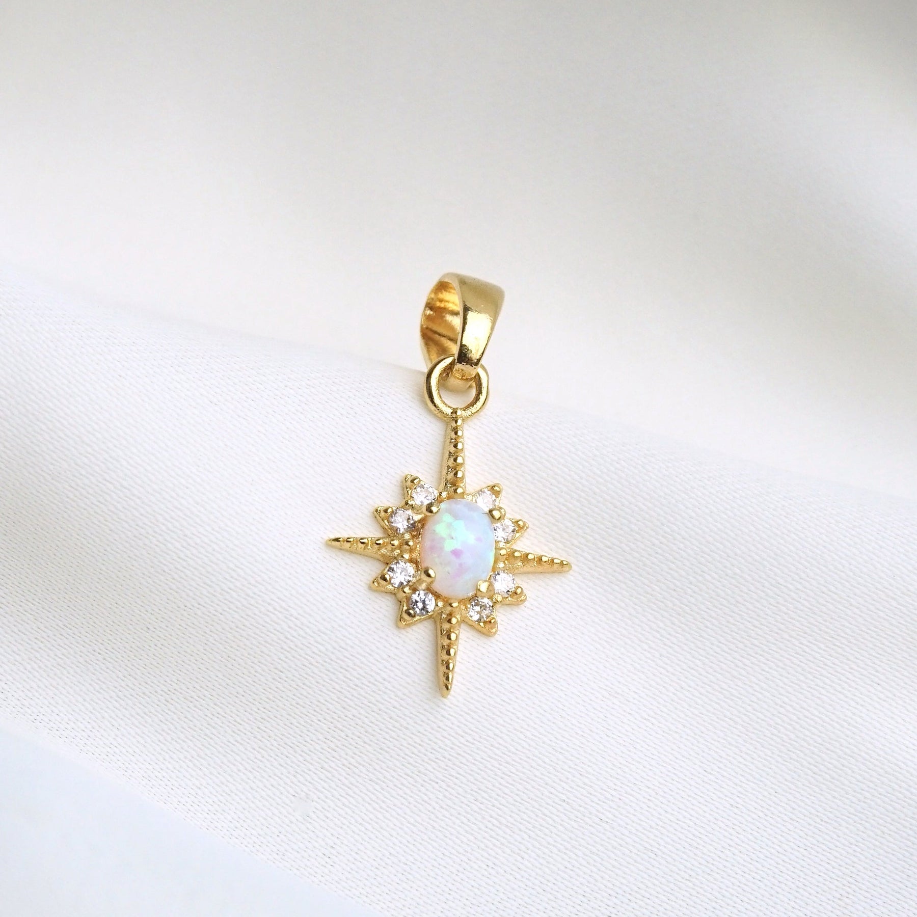 The pendant is high quality gold plated using 1 micron 18 karat gold with opal and zirconia stones set in it. And the necklace is made of gold coloured stainless steel