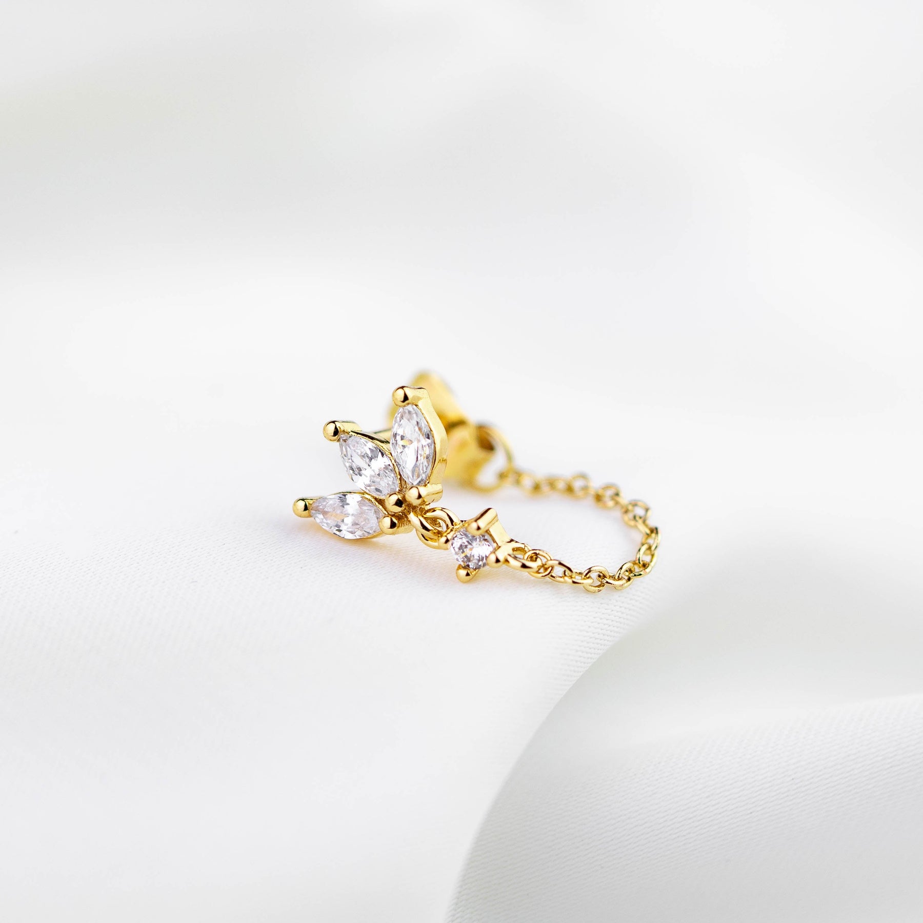The earpin, including the chain, is 16,2 mm by 7,9 mm with a 10,5 mm long post