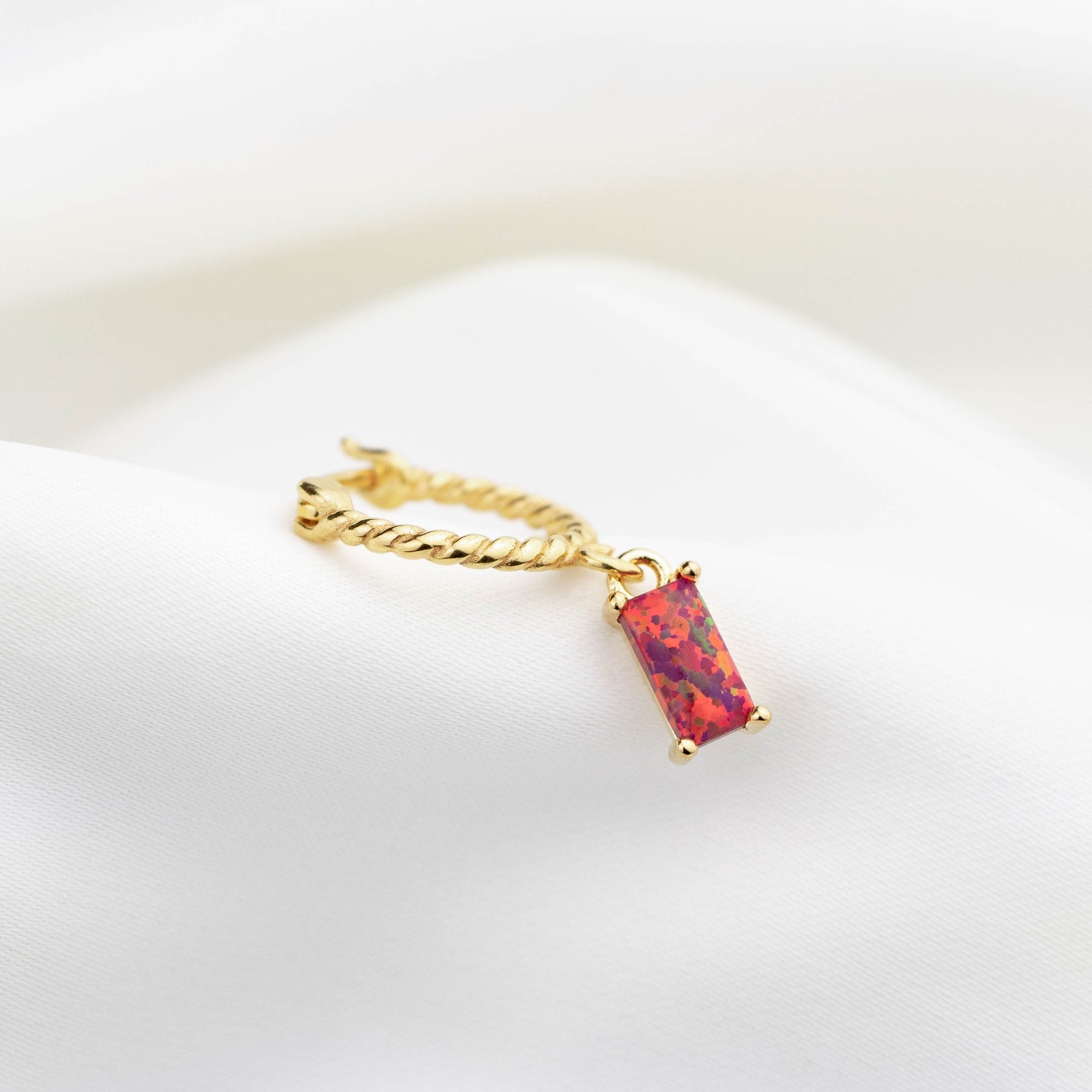 Red Opal Cubic Twisted Hoop Earring