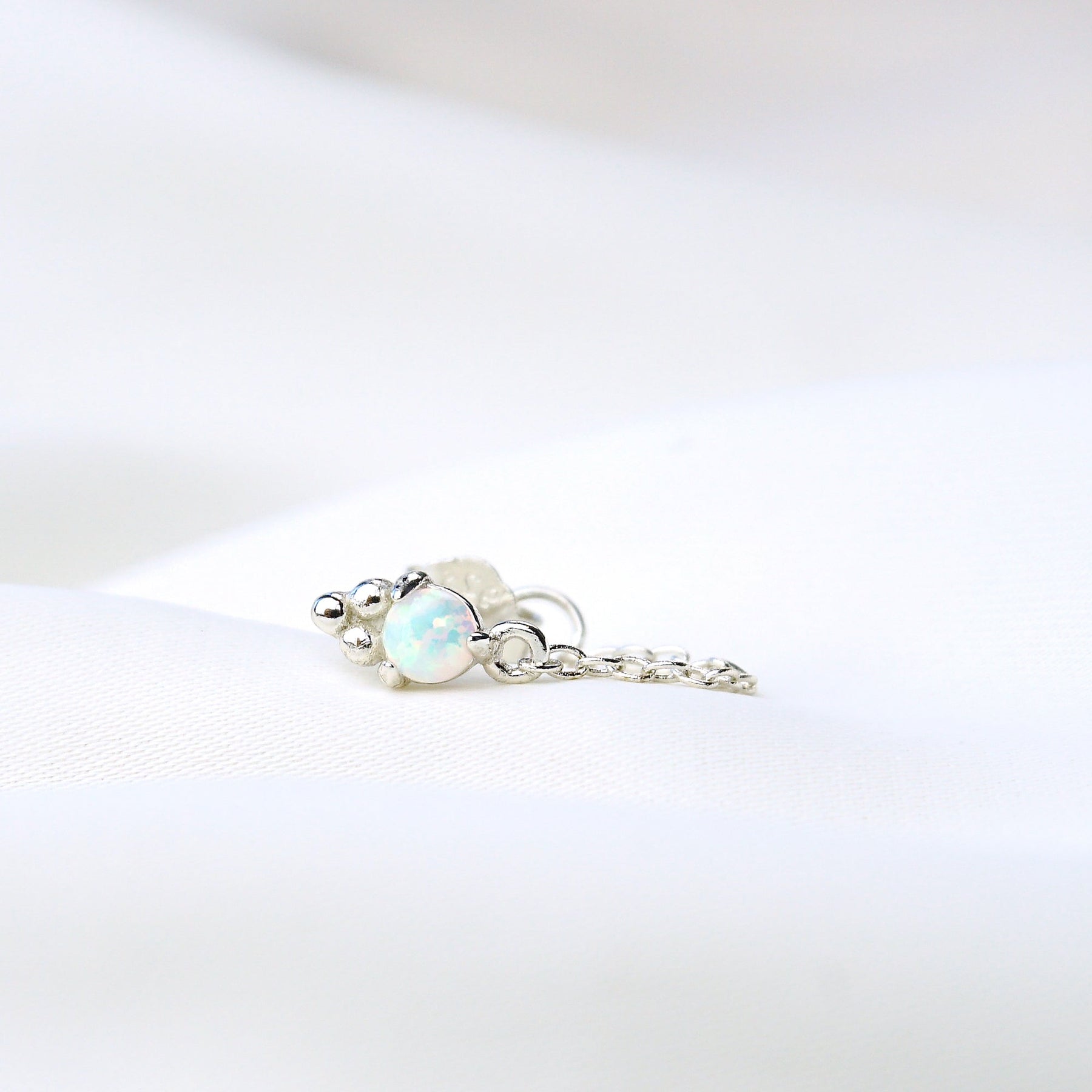 The earpin including the chain is 15 mm by 3,9 mm with a 10,5 mm long post