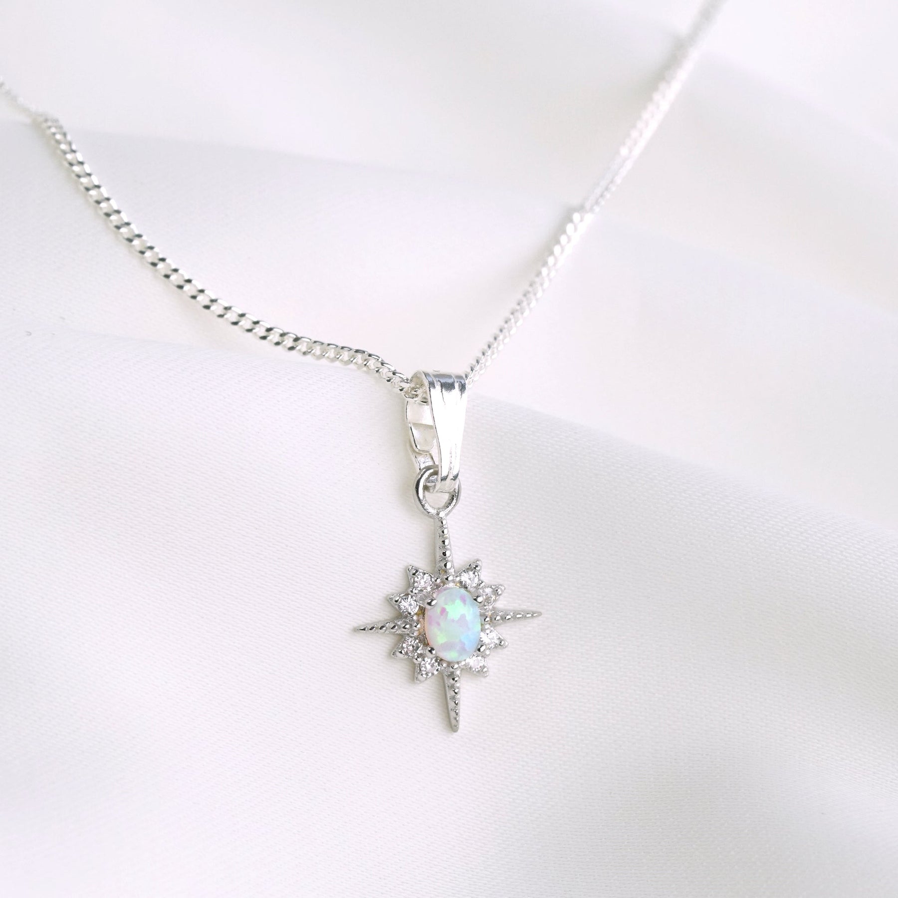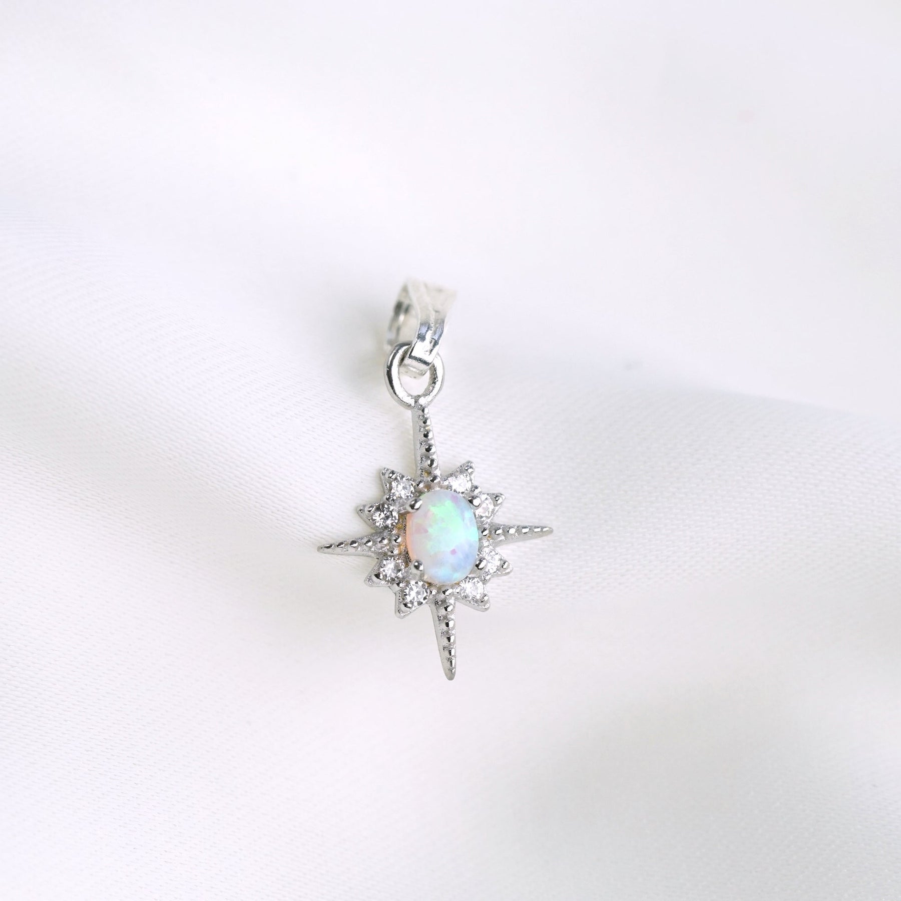 Solid 925 sterling silver with opal and zirconia stones set in it.