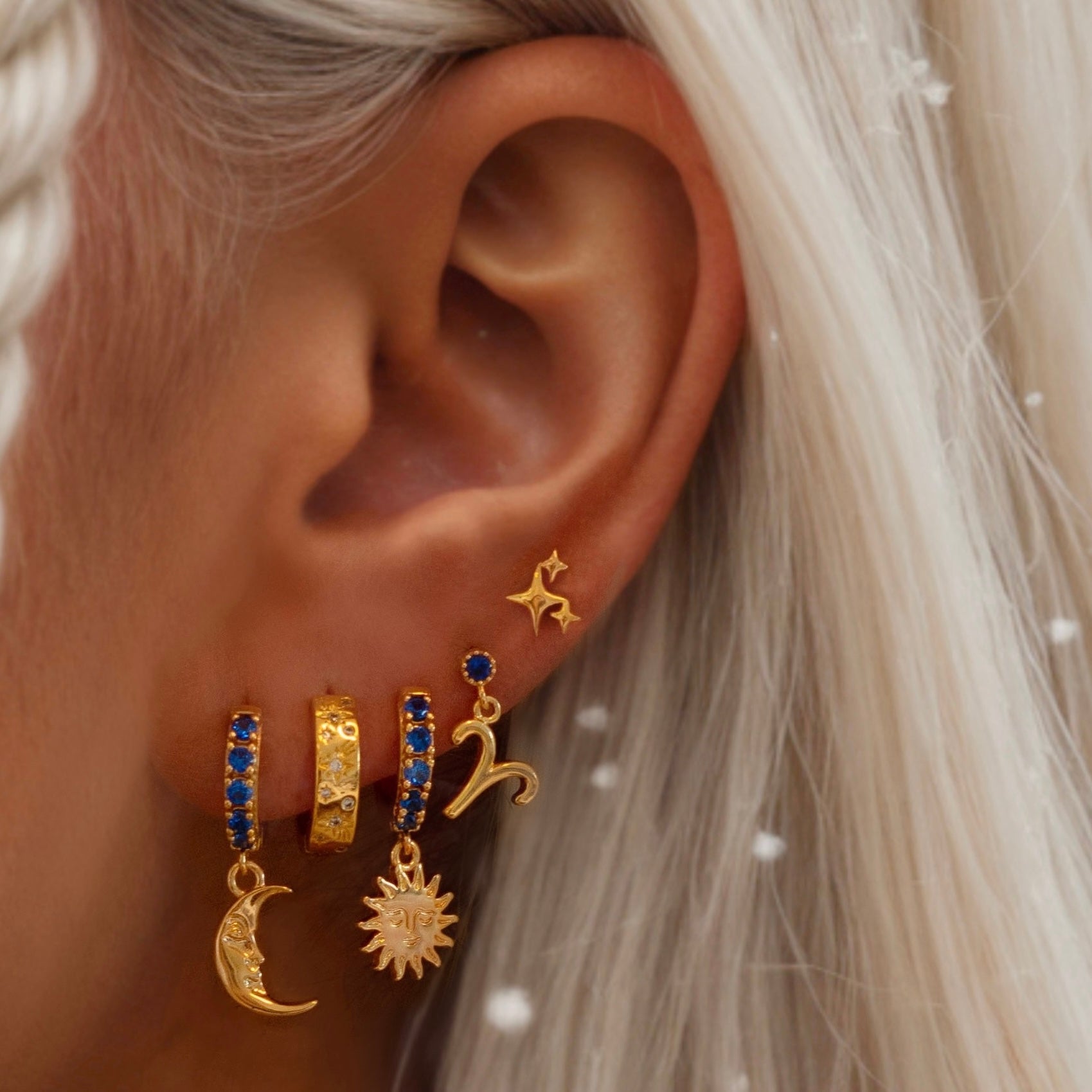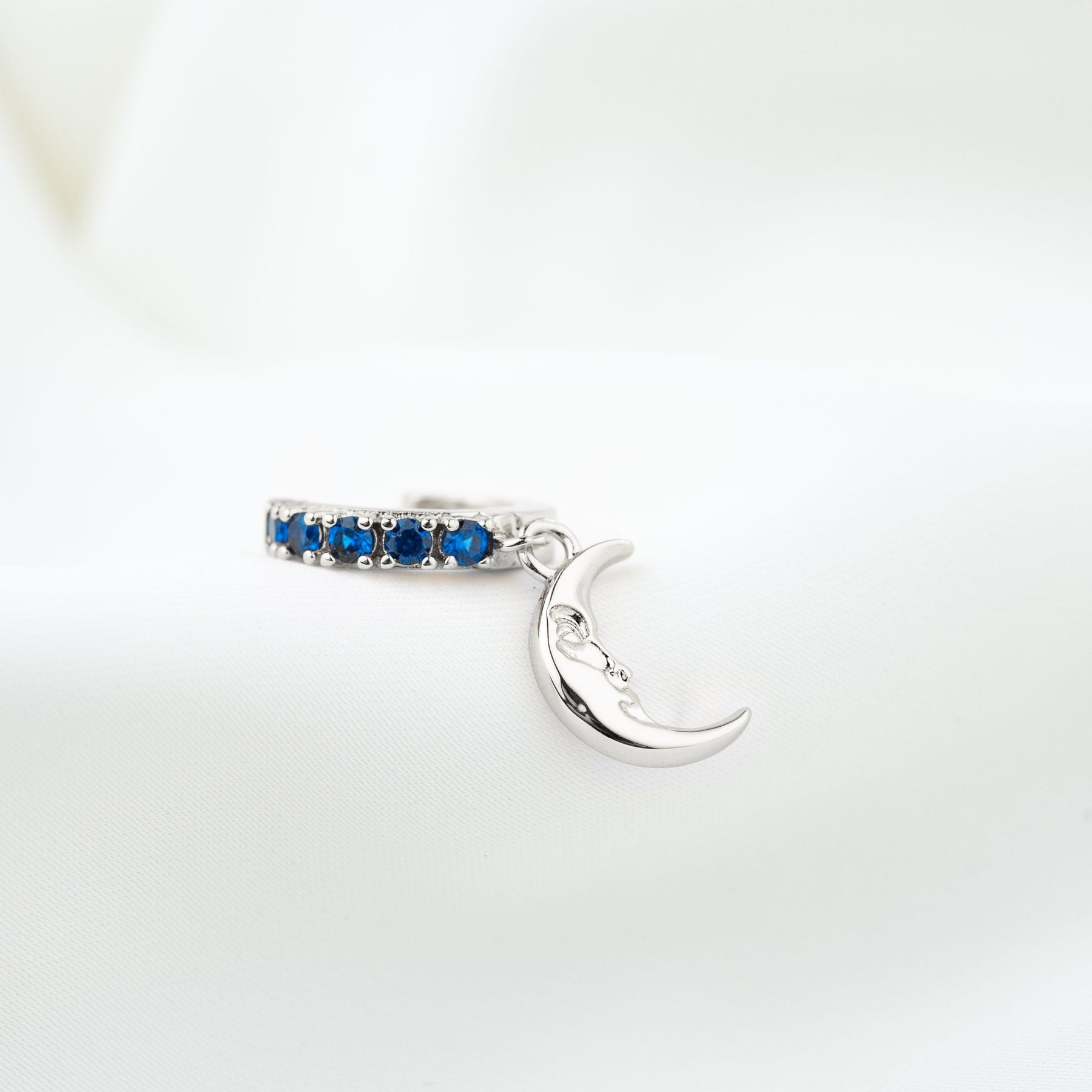 Silver Sapphire Moon Earring