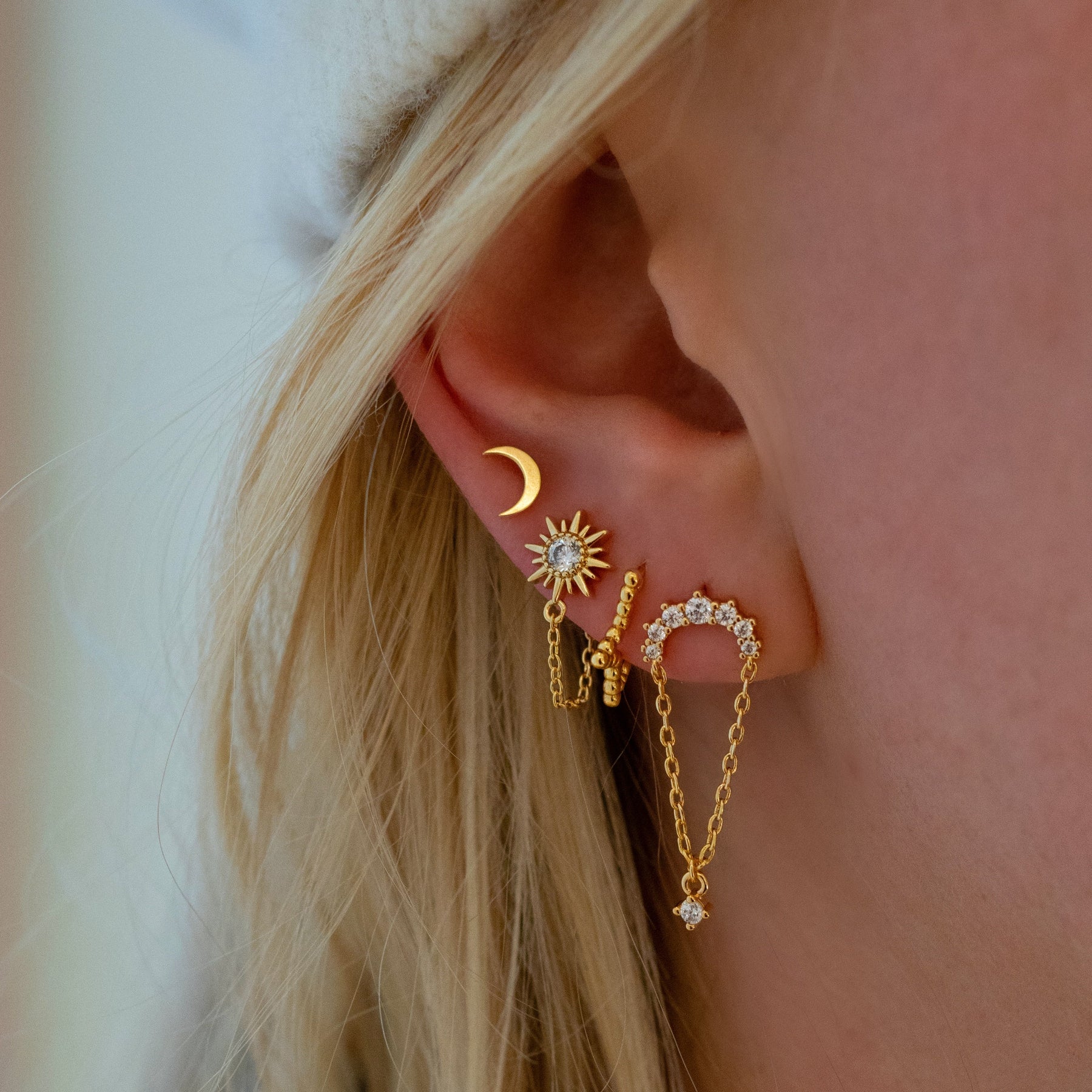 The earpin, including the chain, is 10.2 mm by 28.9 mm with a 10,5 mm long post