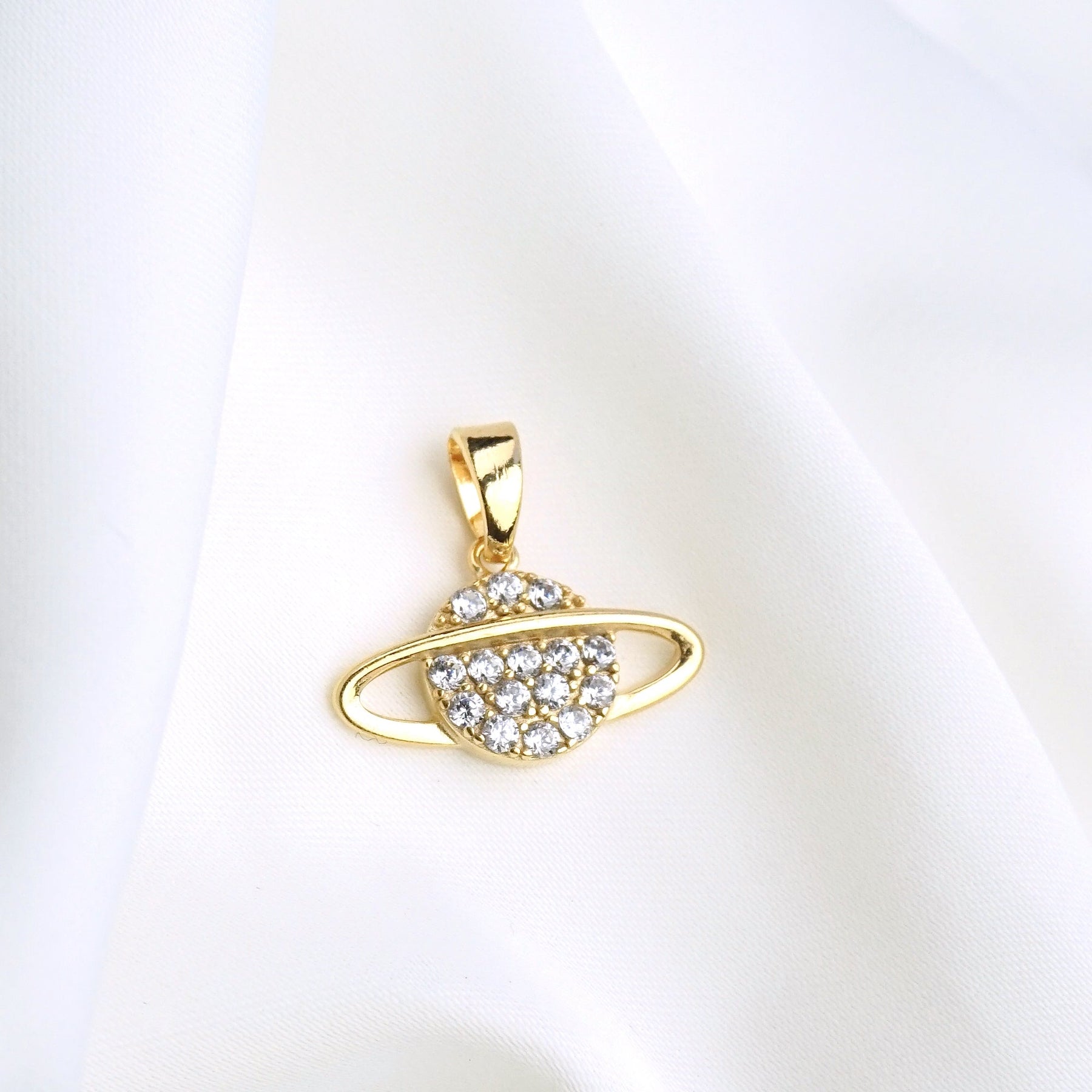 The pendant is high quality gold plated using 1 micron 18 karat gold with zirconia stones set in it.